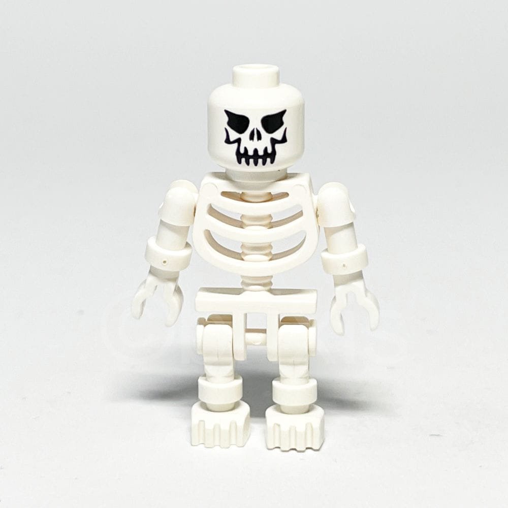- Torso: 2× Weißes Skelettbein mit markanten, knöchernen Strukturen, das die klassische Erscheinung eines LEGO-Skeletts unterstreicht und an der Minifigur befestigt wird.