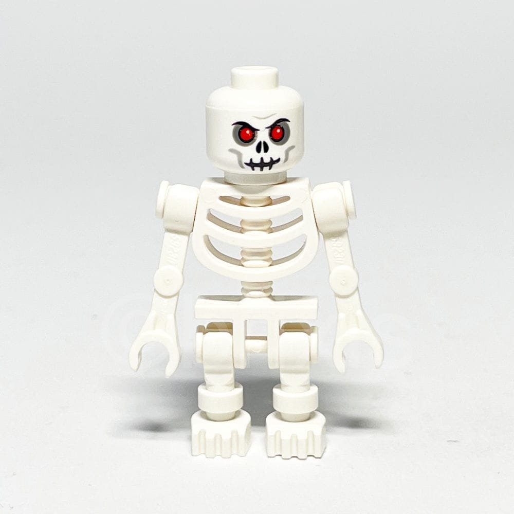 - Torso: 2× Weißes Skelettbein mit markanten, knöchernen Strukturen, das die klassische Erscheinung eines LEGO-Skeletts unterstreicht und an der Minifigur befestigt wird.