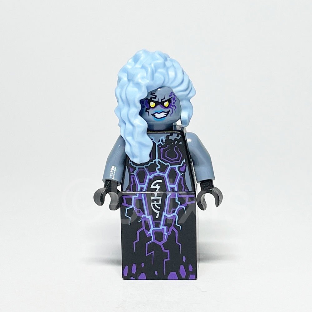 - Schwarzer Rock mit dunkellila und hellblauen Blitzmustern sowie weißen magischen Symbolen verleiht der Minifigur einen geheimnisvollen und mystischen Look.