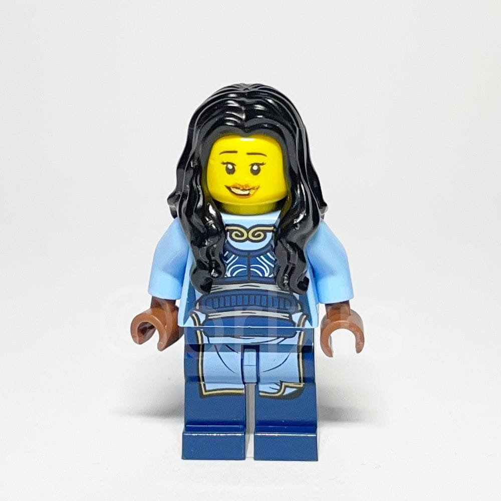 - Torso: Hellblauer Torso mit dunkelblauer Ninjago-Kontur, grauem Gürtel und goldener Halskette zeigt filigrane Details und verleiht der Figur eine geheimnisvolle Aura.