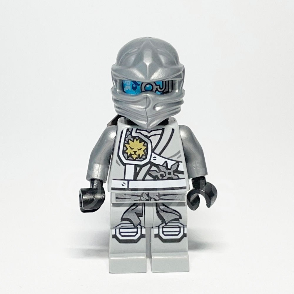 Die LEGO NINJAGO Minifigur Zane (NJO0251) gehört zur NINJAGO Themenwelt und erschien im Jahr 2016 in mehreren LEGO NINJAGO Sets. Die Figur trägt einen hellgrauen Torso mit Ninjago-Schulterschutz, weißen Gurten und einem goldenen Löwenemblem, sowie flache silberne Arme und ein flaches silbernes Ninjago-Kopfband.