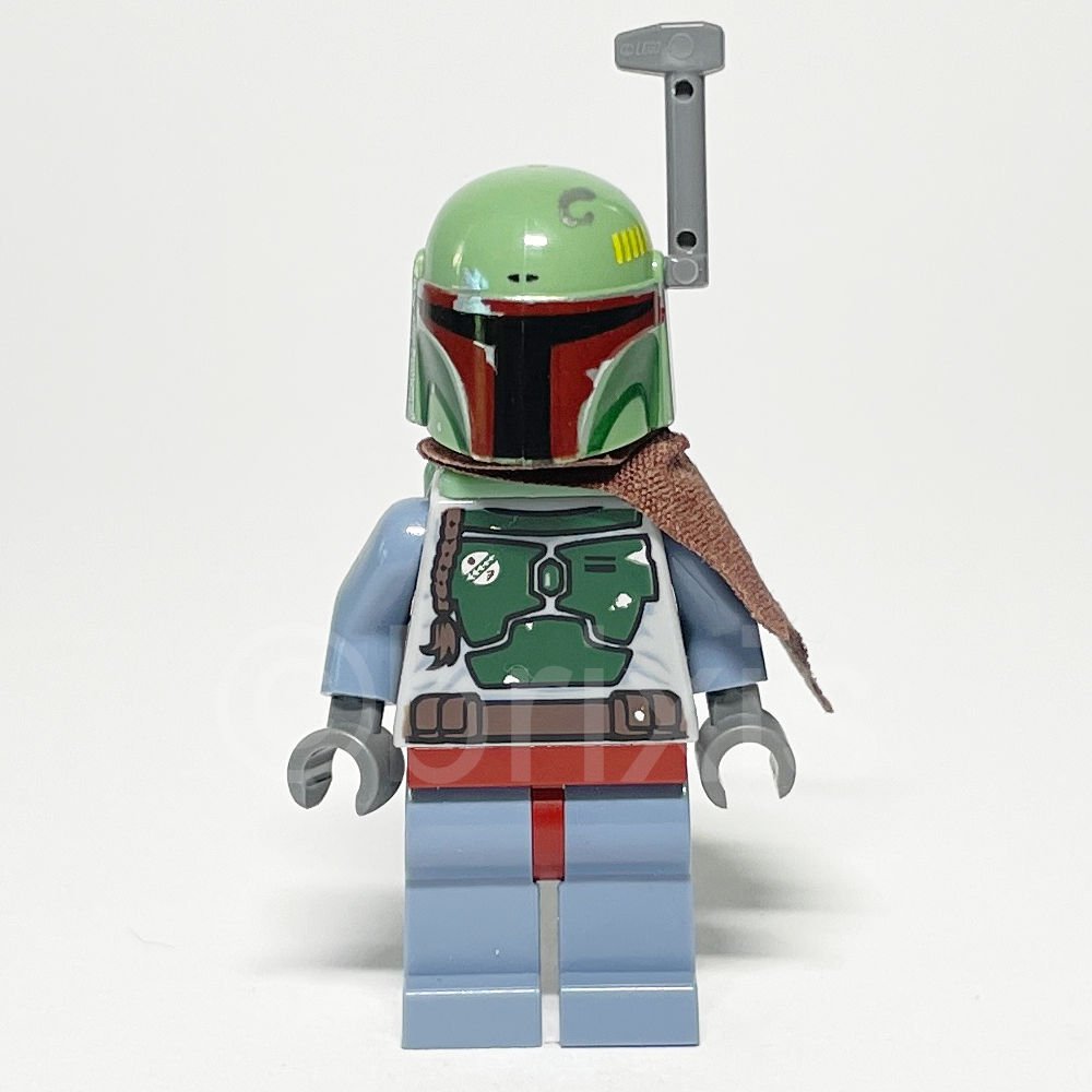 Die LEGO Star Wars Minifigur Boba Fett (SW0279) erschien 2010 und ist mehreren LEGO Star Wars Sets zugeordnet, darunter das Set 8097-1 – Slave I (3rd edition). Die Figur trägt eine Mandalorianer-Rüstung mit hellbläulich-grauem Torso, sandblauem Jetpack, dunkelblaugrauem Helm und sandgrünen Details, ergänzt durch einen Kopf mit Bartstoppeln und verschmitztem Lächeln.