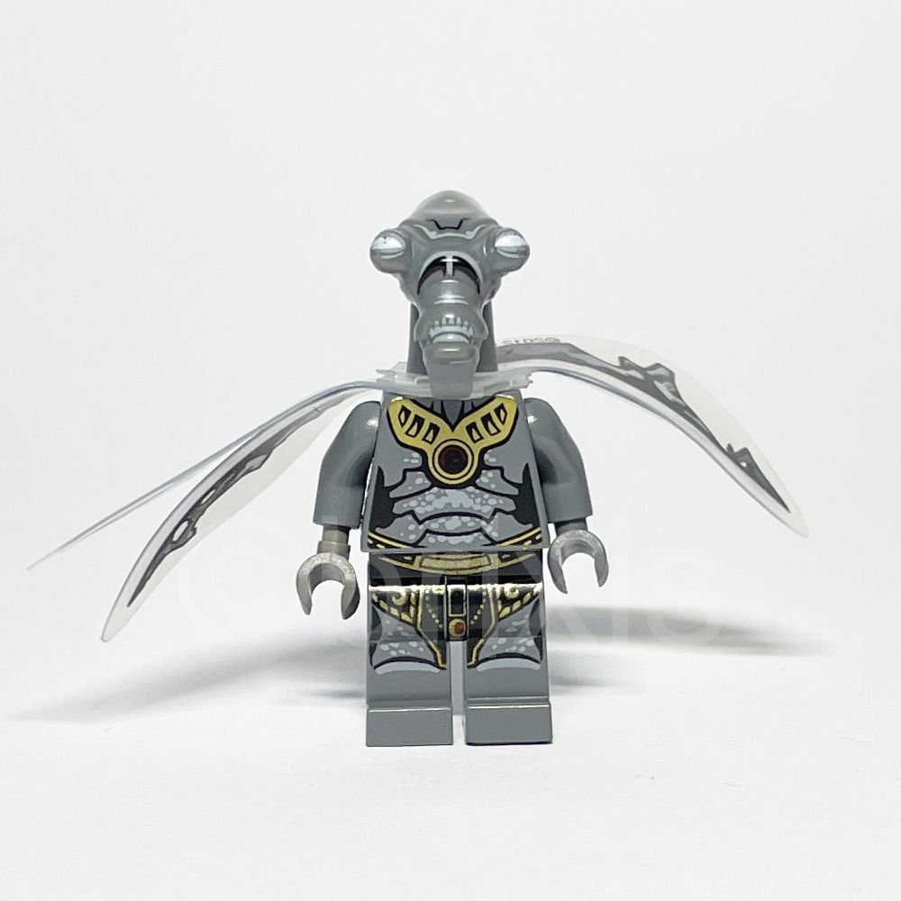 • Kopf: Dunkelgrauer Kopf mit modifiziertem Geonosianer-Design und grauem Augenmuster, das eine geheimnisvolle und fremdartige Ausstrahlung verleiht.