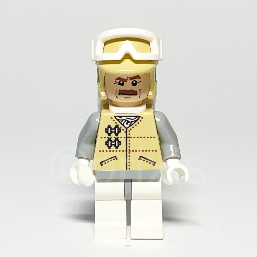 - Torso: Hellbeiger Torso mit einer Star Wars Hoth-Rebellenjacke, die durch Taschen, braune Punktlinien und ein weißes Schal-Muster aufwendig gestaltet ist.
