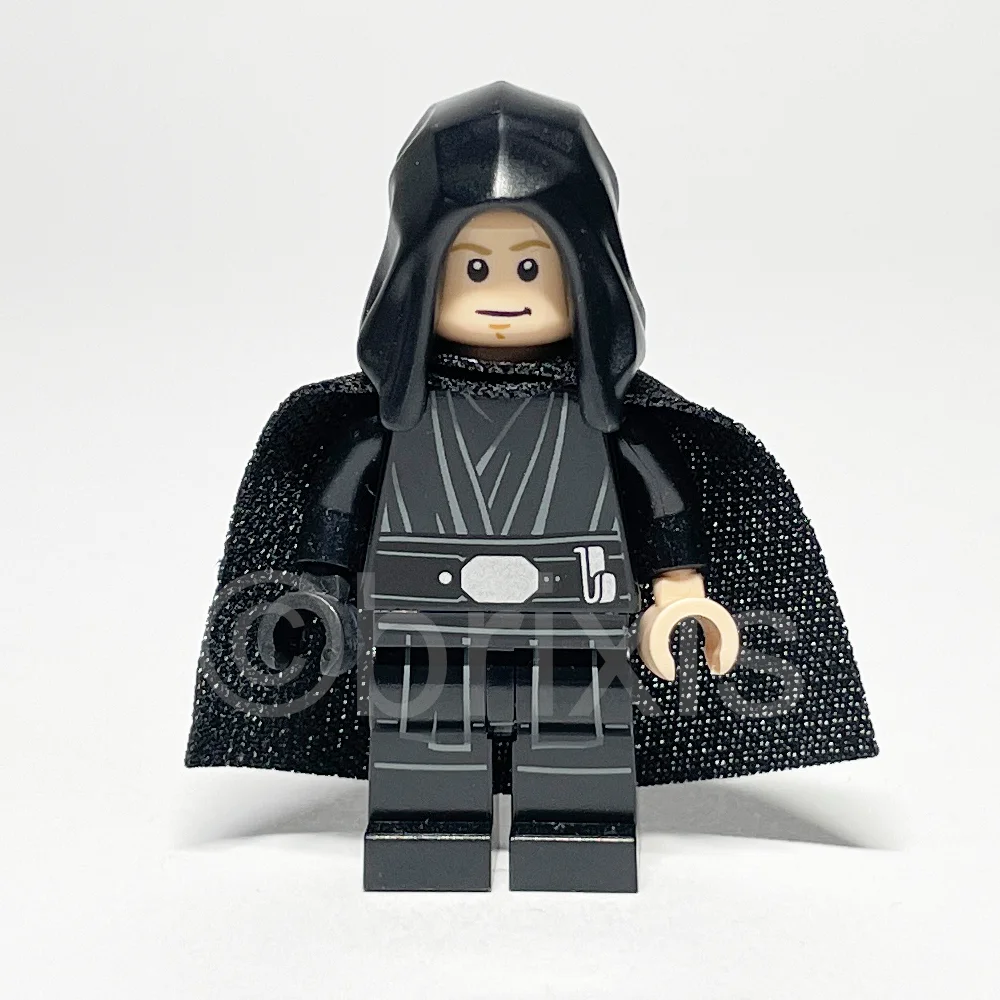 - Torso: Schwarzer Torso mit Tunika, dunkelblaugrauen Konturlinien, großer silberner Schnalle und Lichtschwertclip-Muster, schwarzen Armen, linker Hand in hell nougat und rechter Hand in schwarz