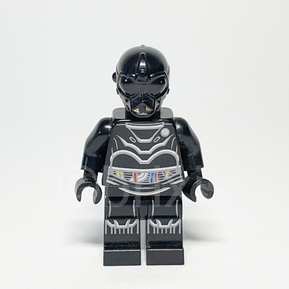 Die Minifigur zeichnet sich durch ihren vollständig schwarzen Torso aus, der mit detaillierten Bedruckungen im Stil des NI-L8 Protokolldroiden verziert ist. Die schwarzen Arme und Hände ergänzen das Design, während die bedruckten schwarzen Hüften und Beine den Look abrunden. Der modifizierte schwarze Kopf, der an die RA-7 Serien-Protokolldroiden erinnert, ist schlicht gehalten und ohne Aufdruck, was der Figur eine geheimnisvolle Aura verleiht.
