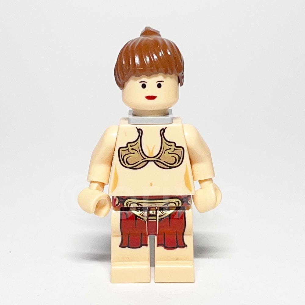 Die LEGO Star Wars Minifigur Princess Leia (SW0085) gehört zur Themenwelt Star Wars und erschien im Jahr 2006 als Teil des Sets Jabba’s Sail Barge. Die Figur trägt einen Torso in hellem Nougatton mit detailliertem Aufdruck, dunkelrote Hüften mit hellen Nougatbeinen, einen Kopf mit feinen Augenbrauen und rötlich-braunes Haar mit Pferdeschwanz.