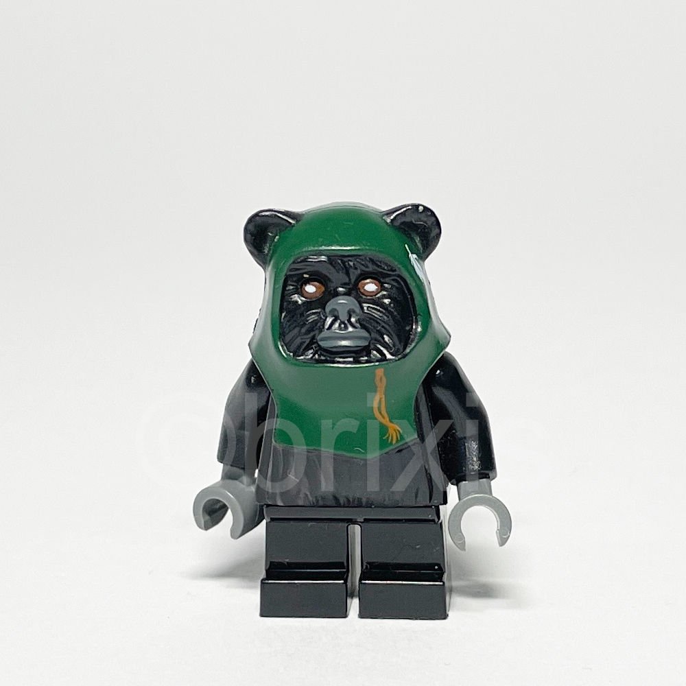 - Kopf: Schwarzer Kopf mit dunkelgrüner Kapuze und einem weißen Feder-Muster, das den einzigartigen Charakter eines Ewoks aus der Star Wars-Welt lebendig werden lässt.