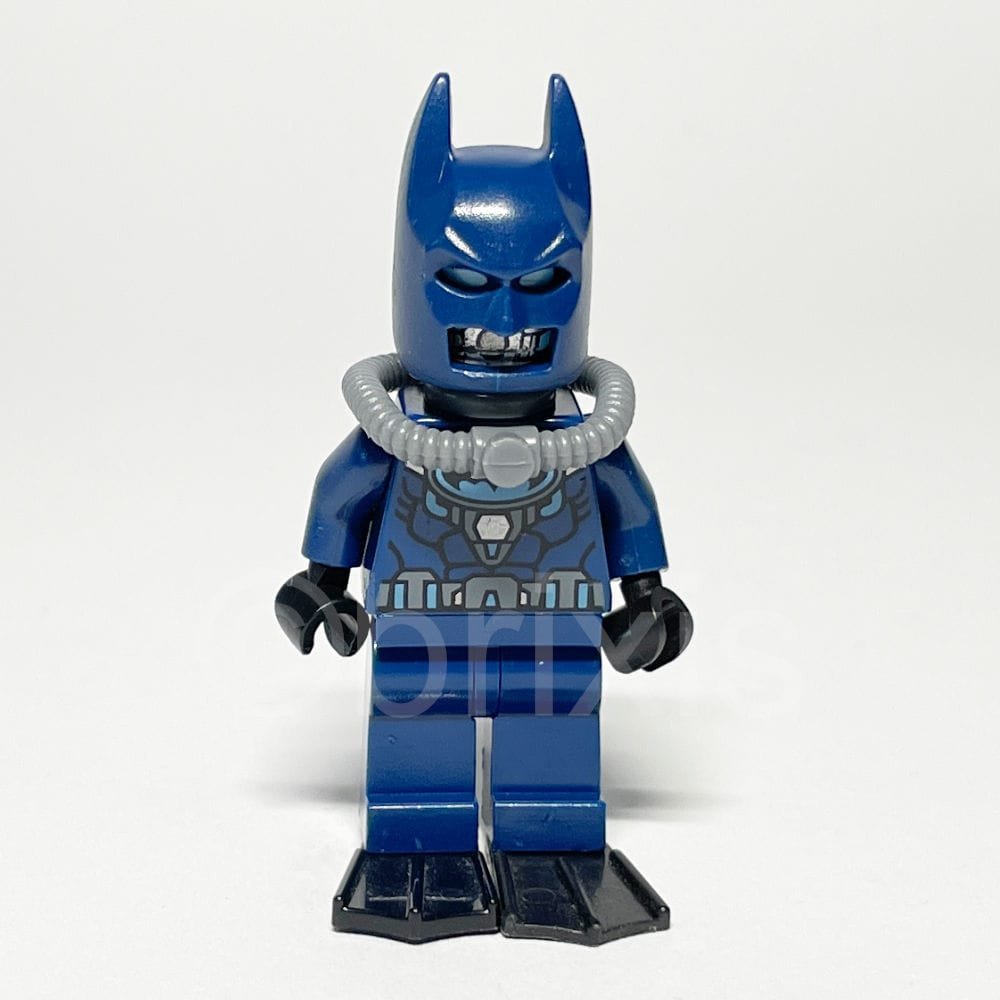 - Torso: Dunkelblauer Torso mit Batman-Logo in mittelblauem Oval, Körperpanzer und dunkelblaugrauem Gürtel, inklusive dunkelblauer Arme und schwarzer Hände.