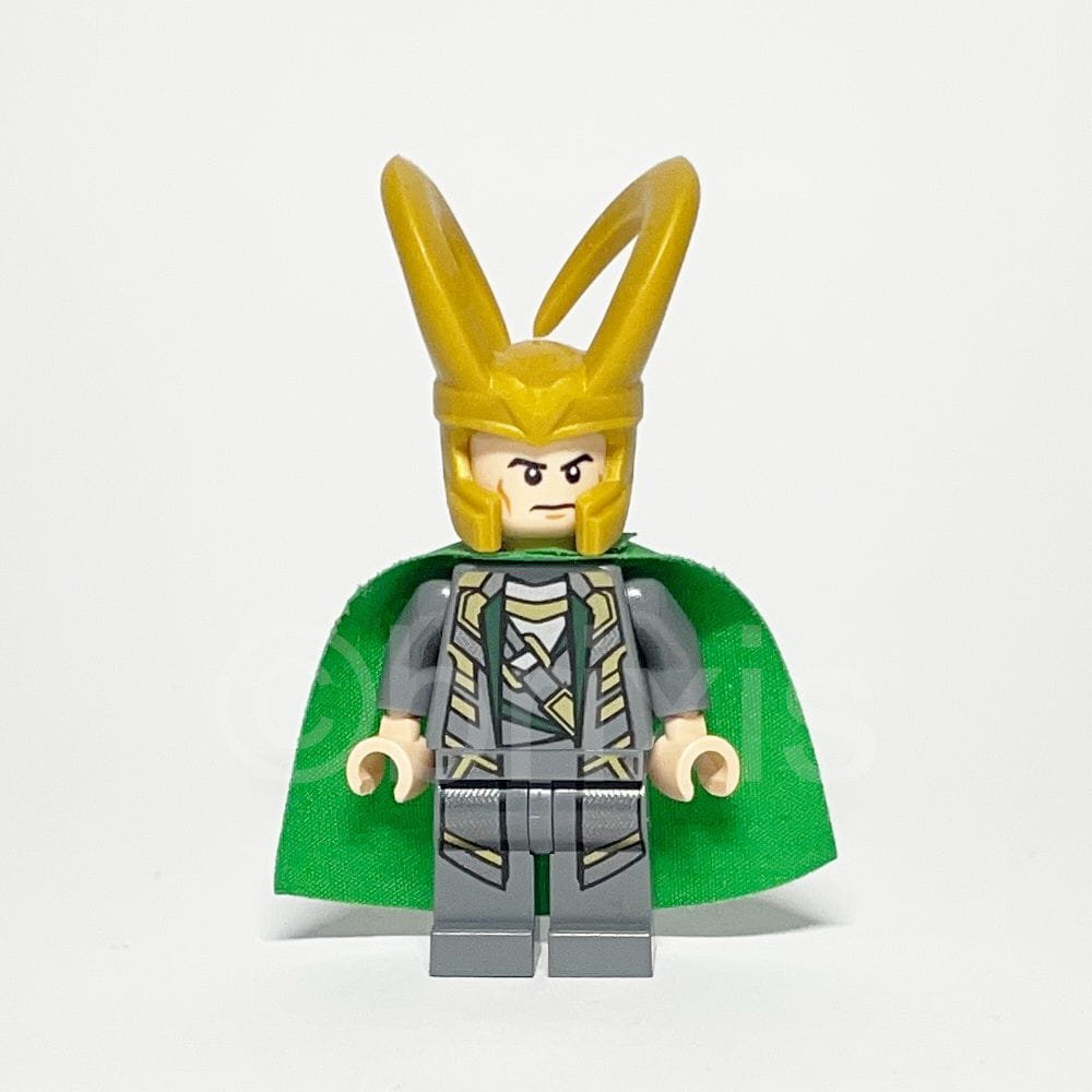 Die LEGO Super Heroes Minifigur Loki (SH0033) gehört zur Themenwelt Super Heroes und erschien im Jahr 2012 in mehreren LEGO Sets. Die Figur trägt einen dunkel-bläulich-grauen Anzug mit silbernen und goldenen Akzenten, ein grünes Cape sowie einen perlgoldenen Helm mit großen, geschwungenen Hörnern.