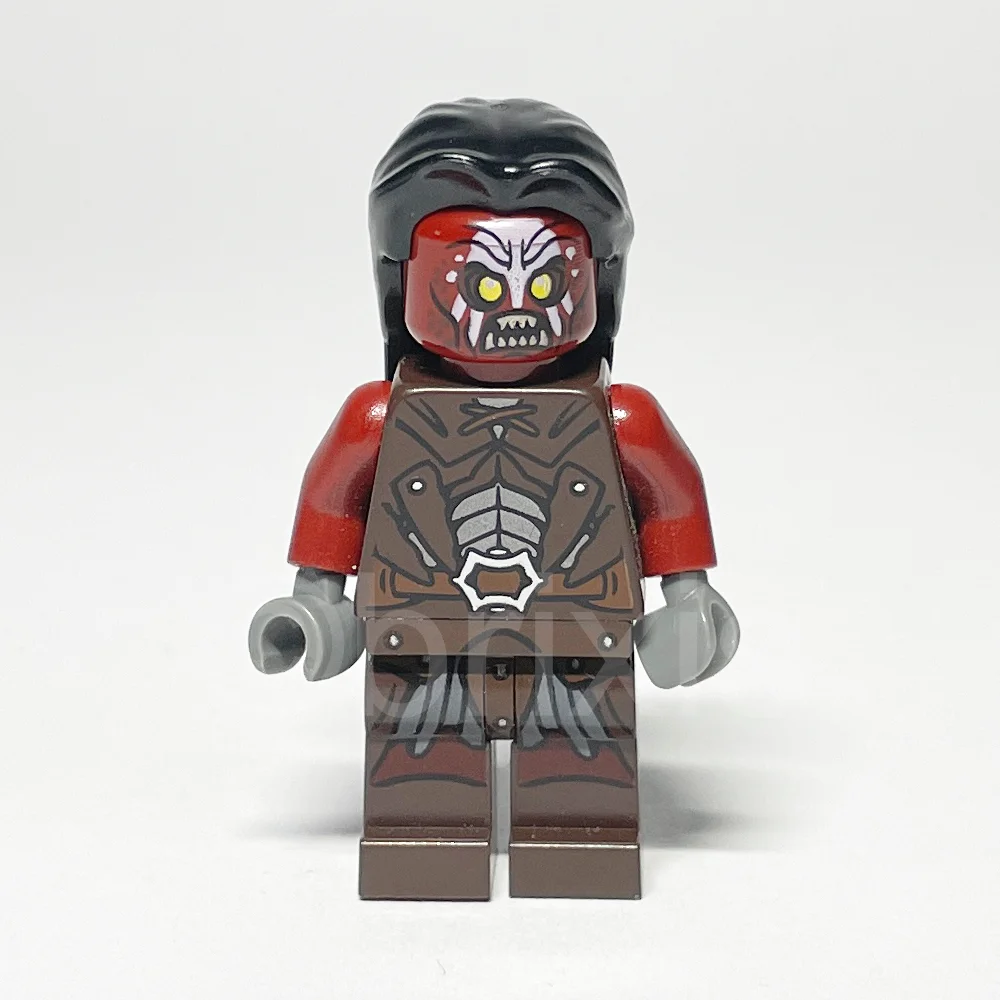 Die LEGO The Hobbit and The Lord of the Rings Minifigur Uruk-hai (LOR006) gehört zur Themenwelt von 2012 und ist dem Set 9471-1 – Uruk-hai Army zugeordnet. Die Figur trägt einen dunkelbraunen Torso mit Lederpanzerung, dunkelrote Arme, einen doppelseitigen Kopf mit Alien-Ork-Gesicht und langes schwarzes Haar.