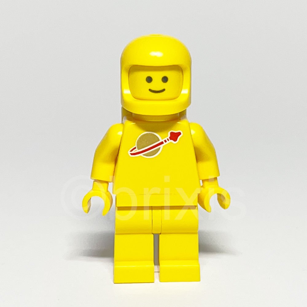 - Torso: Gelber Torso mit klassischem Space-Logo hoch auf der Brust zeigt ein schlichtes Design mit gelben Armen und Händen, ideal für Weltraumabenteuer und Retro-Sammlungen